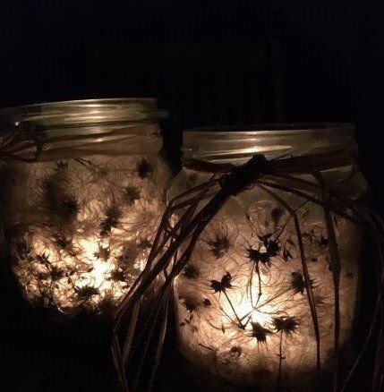 Kennst Du die Waldrebe? Sie rankt sich überall am Waldrand und an Bachläufen an Bäumen hinauf – im Sommer, wenn ihre Blüte aufgeht, fällt sie oft gar nicht so auf, weil alles um sie herum grünt und blüht. Viele kennen sie nicht und pflanzen sich die kultivierte Sorte, eine Clematis in den Garten, dabei wächst sie wirklich überall bei uns. Im verblühten Zustand eignen sich die hübschen „Püschel“ wunderbar als Bastel-Material. Ein sehr hübsches Windlicht kannst Du ganz einfach aus einem breiteren und einem schmäleren Marmeladenglas, die aber ungefähr gleich hoch sind machen, in dem Du die Samenstände von der Waldrebe im Wald sammelst und in den Zwischenraum steckst. Dann stellst Du ein Teelicht ins Glas, wickelst einen Bast um das Glas, zündest die Kerze an und erfreust Dich am schönen, warmen Licht.